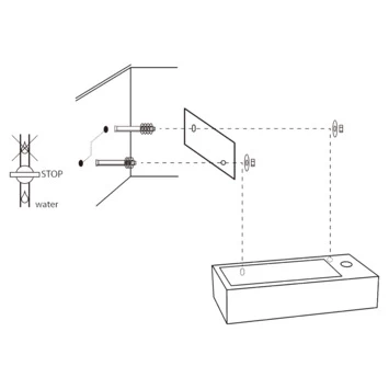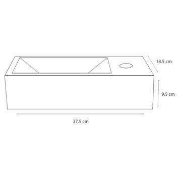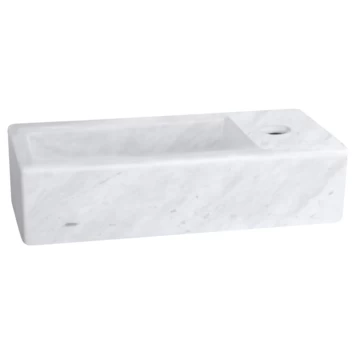 De kraan en de sifon zijn niet meegeleverd. De fontein zelf is gemaakt van marmer en 37.5×18.5×9.5 cm.