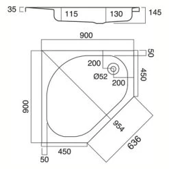 Sealskin Douchebak Optimo 5-hoek Hoekinstap Inbouw 90x90x14 Cm