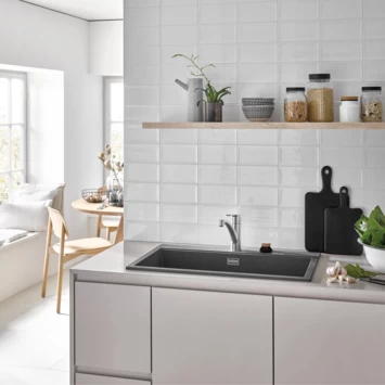 De iconische keukenfavoriet GROHE Start eengreeps keukenkraan is opnieuw ontworpen om het gebruik nog aangenamer en gemakkelijker te maken en vormt hierdoor een ideale upgrade. Deze designklassieker is opgefrist om te voldoen aan de eisen van moderne keukens en heeft nu een slank, modern profiel en beschikt over meer gebruikscomfort. Deze keukenkraan is ontworpen voor eengatsinstallatie en de lage uitloop kan soepel 140° worden gedraaid, wat meer flexibiliteit biedt aan de spoelbak zonder dat je op de muren spettert. De mousseur kan eenvoudig worden verwisseld met behulp van slechts een muntje – er komt dus geen gereedschap aan te pas. Binnenin zorgt de technologie van het GROHE SilkMove ES-cartouche voor een levenslange soepele en nauwkeurige bediening terwijl GROHE Zero geïsoleerde binnenwaterwegen ervoor zorgt dat je drinkwater lood- en nikkelvrij is. Een instelbare debietbegrenzer bespaart water en geld terwijl een geïntegreerde temperatuurbegrenzer verbranding voorkomt. De glanzende GROHE StarLight chroom afwerking is krasbestendig en zorgt voor een oogverblindend oppervlak dat lang meegaat. Met de GROHE QuickFix Plus-set kan de keukenkraan eenvoudig en snel worden geïnstalleerd, zonder dat je gereedschap nodig hebt. Voor deze kraan wordt een minimale druk van 1,0 bar aanbevolen.