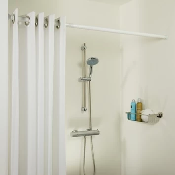 Sealskin Douchegordijnstang Seallux Verstelbaar Wit 125-220 cm is een praktische douchegordijnstang van het merk Sealskin. Het is een telestang met een doorsnede van 28 mm. Uitgevoerd in wit draagt dit product bij aan de neutrale uitstraling van je badkamer. De afmeting van 125-220 cm maakt je douchestang ideaal voor het ophangen van je douchegordijn in een nis tussen 2 muren van de badkamer. Dit product is makkelijk te monteren.