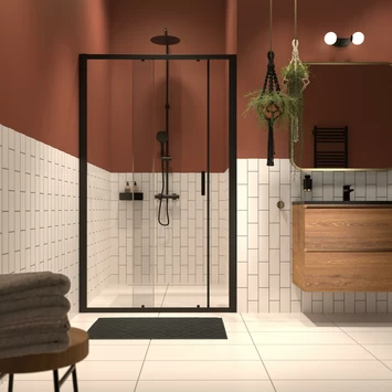 Deze tweedelige schuifdeur uit de Inc. serie straalt dankzij zijn eenvoud. Hij is 120 cm breed en geschikt voor plaatsing in een nis. Het solide ontwerp en de matzwarte kleur afwerking zorgen voor een stoere, moderne uitstraling. Ook op het gebied van functionaliteit denken wij graag met je mee. Dankzij de kwalitatieve rollers glijdt het schuivend paneel met gemak. Het softclose-systeem vangt de beweging op en sluit de deur vervolgens zachtjes. De profielen zijn daarnaast vlak afgewerkt en het glas is voorzien van een antikalklaag. Het onderhouden van de douchecabine is daardoor geen enkel probleem. Dankzij het hoogwaardige design geniet je jarenlang van jouw Inc. douchedeur.