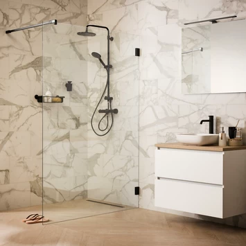De volledig profielloze serie ‘I AM’ is met recht een transparante alleskunner. Naast diverse standaard maatvoeringen zijn talloze maatwerkoplossingen mogelijk. Zo kunnen we de breedte en hoogte aanpassen, maar bijvoorbeeld ook eventuele schuintes in de muren of het plafond opvangen. Deze Sealskin Inloopdouche I AM A3 100×200 cm Zwart (divider) is het toppunt van kwaliteit en transparantie. Wat deze wand écht bijzonder maakt, is de matzwarte afwerking. Zo breng je een unieke sfeer in je badkamer. Het veiligheidsglas van maar liefst 8mm is altijd voorzien van een antikalk laag waardoor kalk en viezigheid zich minder snel zal hechten. Deze Walk in type A3 is tevens beschikbaar in de standaard maten 900 en 1200mm en natuurlijk in maatwerk. Daarnaast is deze inloop douche beschikbaar in een stoere RVS uitstraling en in een luxueuze zilver hoogglans afwerking.