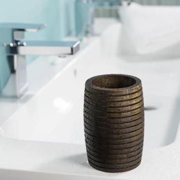 De Sealskin Tandenborstelhouder Native Bruin is gemaakt van hout. De vormgeving en de kleur van deze beker doen denken aan een bijenkorf in de vrije natuur.