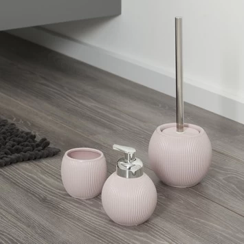 De Sealskin Toiletborstel met houder Convex Lichtroze is gemaakt uit keramiek. De afwerking van deze wc-borstelhouder is een lichtroze pasteltint en heeft een reliëf in de vorm van verticale gebogen lijnen. De houder is geschikt om op de grond te plaatsen en biedt ruimte voor 1 wc-borstel. Deze Scandinavische trend past in elke badkamer. Vervolledig deze Convex serie van Sealskin met de bijhorende beker en zeepdispenser. Je vindt deze sanitaire accessoires ook in andere pasteltinten, namelijk lichtaqua en lichtgrijs.