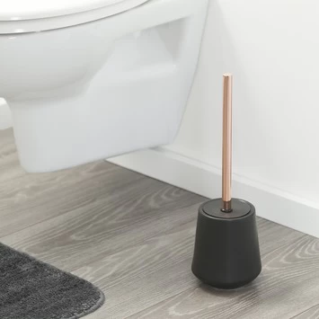 Uitgevoerd in zwart met brons voor het trendy toilet.