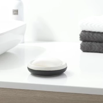 De complete Sphere serie in twee contrasterende kleuren, zwart en wit, kleedt je badkamer in één keer aan. Dit Sealskin Zeepbakje Sphere Zwart is handig voor je zeep, maar ook erg geschikt om je sierraden of horloge in te leggen. Maak de zeepschaal regelmatig schoon met een vochtig doekje.
