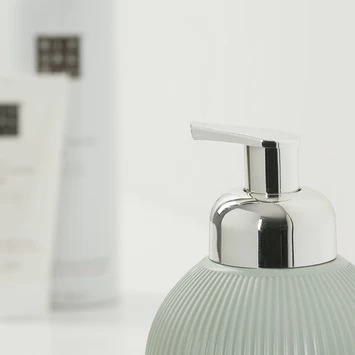 De Sealskin Zeepdispenser Convex Licht Aqua is gemaakt uit keramiek. De afwerking van dit zeeppompje is een lichtaqua pasteltint en heeft een reliëf in de vorm van verticale gebogen lijnen. Het pompje is handmatig te bedienen en de dispenser is navulbaar. Deze Scandinavische trend past in elke badkamer. Vervolledig deze Convex serie van Sealskin met de bijhorende beker en toiletborstel met houder. Je vindt deze sanitaire accessoires ook in andere pasteltinten, nl. lichtgrijs en lichtroze.