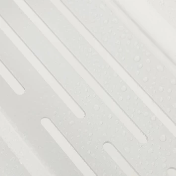 Tiger Caddy douchemand heeft een vlakke bodem met hoge rand die ervoor zorgt dat de producten stevig in het rek blijven staan en de afwateringssleuven laten het water met gemak weglopen. De zachte afgewerkte hoeken zorgen ervoor dat je zonder gevaar voor eigen vingers het mandje schoon kan maken. De Tiger Caddy witte douchemand is 24cm.