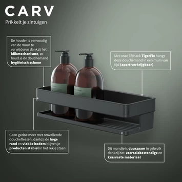 Carv is eenvoudig te bevestigen met TigerFix, onze lifehack voor iedereen die niet wil boren.