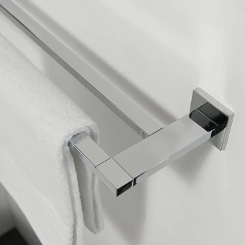Het Tiger Dubbel Handdoekrek Items Chroom van de accessoire serie Items is uitgevoerd in chroom, en is ook verkrijgbaar in RVS. Dit product kan aan de wand worden geschroefd, maar kan ook met behulp van Tigerfix 1 op een gladde en harde ondergrond geplakt worden. Je hoeft dus niet te boren. (Tigerfix is los verkrijgbaar). Er zijn van deze serie diverse sanitair accessoires verkrijgbaar. Dit product maakt deel uit van het Items totaalconcept, dat verder bestaat uit kranen, badmeubelen, douche accessoires en douchecabines, alles in de Items stijl.