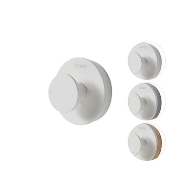 De Tiger Haak Urban Groot Wit is uitgevoerd in de kleur mat wit en wordt geleverd met twee decorringen. De decorringen, in de kleur licht eiken en grijs, maken het mogelijk een subtiel kleuraccent toe te voegen. Het is ook mogelijk de haak zonder de decorring te monteren waardoor het zeer eenvoudig is om het product aan de gewenste stijl aan te passen. Bij de montage van het artikel wordt gebruik gemaakt van een muurplaatje waardoor de bijgeleverde bevestigingsmaterialen uit het zicht verdwijnen. De Urban serie bevat tevens een kleine haak voorzien van dubbelzijdige tape, maar ook een groot aantal aanvullende accessoires voor de badkamer en toiletruimte. Alle in dezelfde stijl. De artikelen uit de serie zijn ook in de kleur mat zwart verkrijgbaar, waarbij natuurlijk ook weer diverse decorringen worden meegeleverd. De haak groot is tevens geschikt voor montage met TigerFix type 1, waarmee accessoires snel en eenvoudig op een gladde, harde ondergrond te bevestigen zijn door middel van een gepatenteerd lijmsysteem. Boren is niet noodzakelijk en de accessoires zijn eenvoudig te verwijderen zonder dat er resten op de ondergrond achterblijven. TigerFix is los verkrijgbaar.