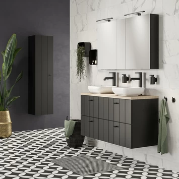 Tiger Maryport Badkamermeubelset 120 Cm Mat Zwart Met Licht Eiken Houten Wasblad, Keramische Opzetkommen En Matzwarte Grepen